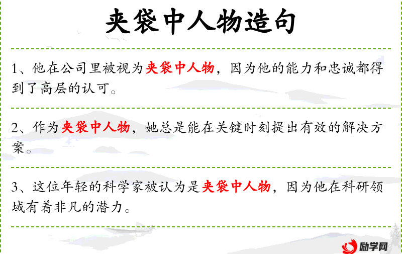 - 夹袋中人物:这个表达可能源自古代官场文化,指那些在身边的重要官员,他们能够在关键时刻提供建议和解决方案。