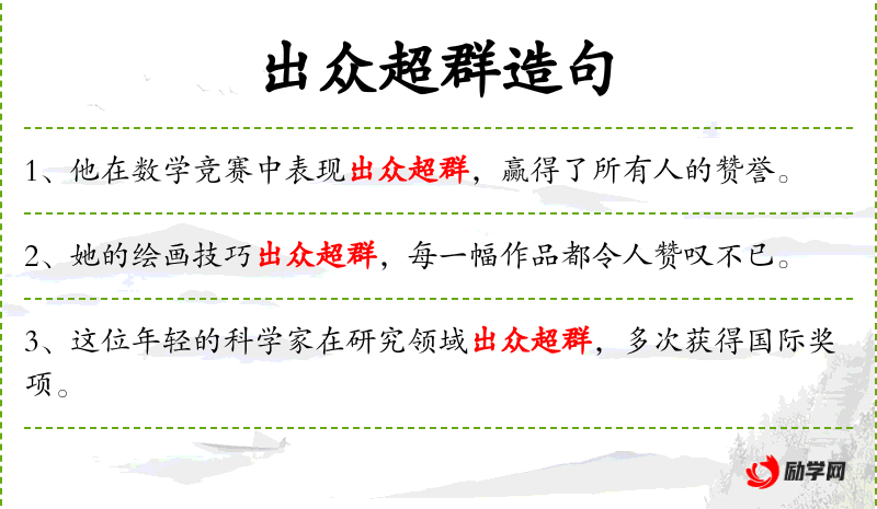 - 出众超群:形容某人或某物非常优秀,超出一般水平。