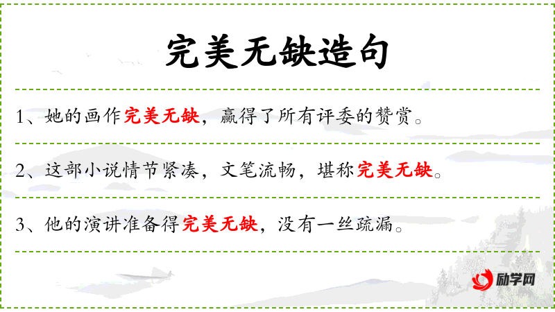 - 完美无缺:完美、无可挑剔、无懈可击