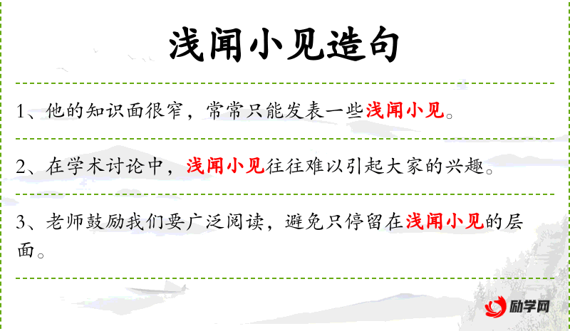 3. 【浅闻小见】 闻:见识。学问浅薄,见解不高。