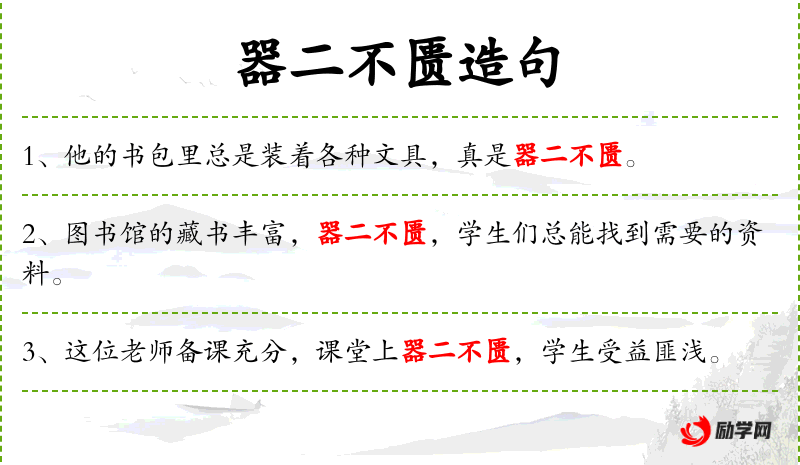 - 器二不匮:成语,意为器物充足,不会缺乏。