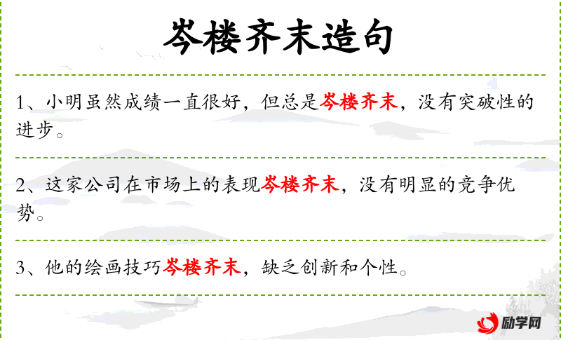 - 岑楼齐末:可能是成语或特定表达,需要进一步解释。
