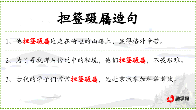 - 谓语:担簦蹑屩,不畏艰难