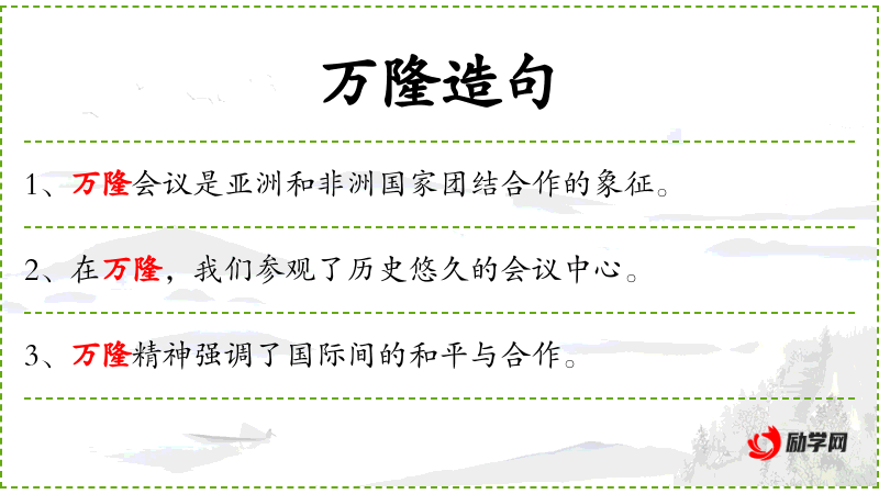 万隆会议是亚洲和非洲国家团结合作的象征。