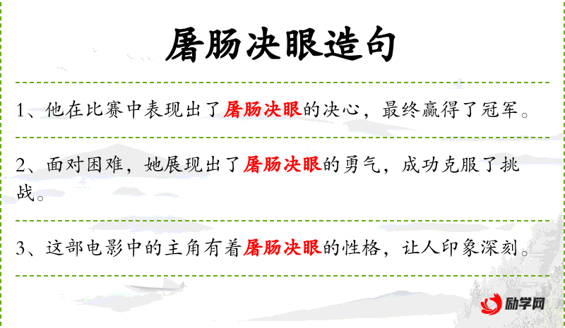 句子:“面对困难,她展现出了屠肠决眼的勇气,成功克服了挑战。”