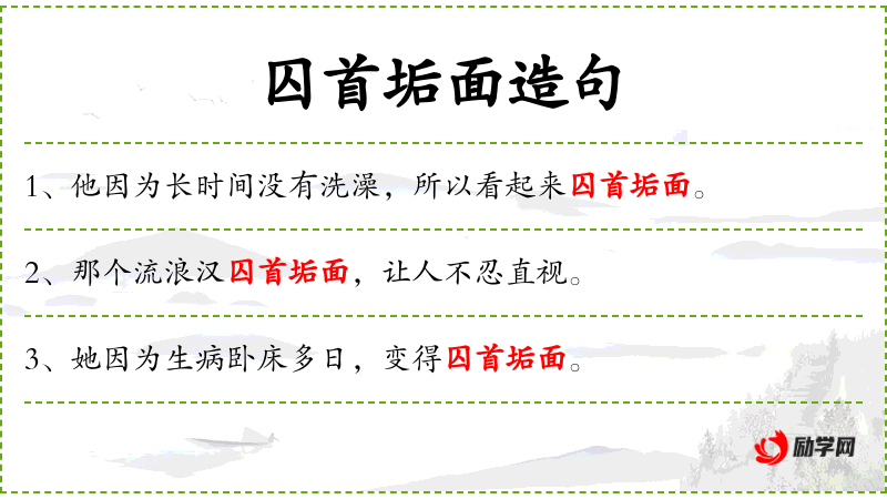 • 囚首垢面:成语,形容人因忧愁或困苦而显得憔悴、不修边幅。