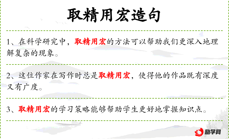 - 取精用宏:这是一个成语,意为提取精华,运用宏大的视角或方法。