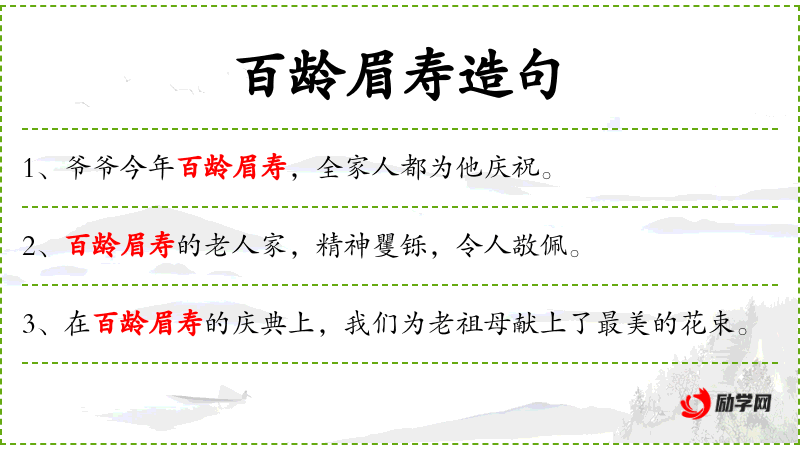 1. 【百龄眉寿】 - 眉寿:长寿。祝人高寿的颂辞。