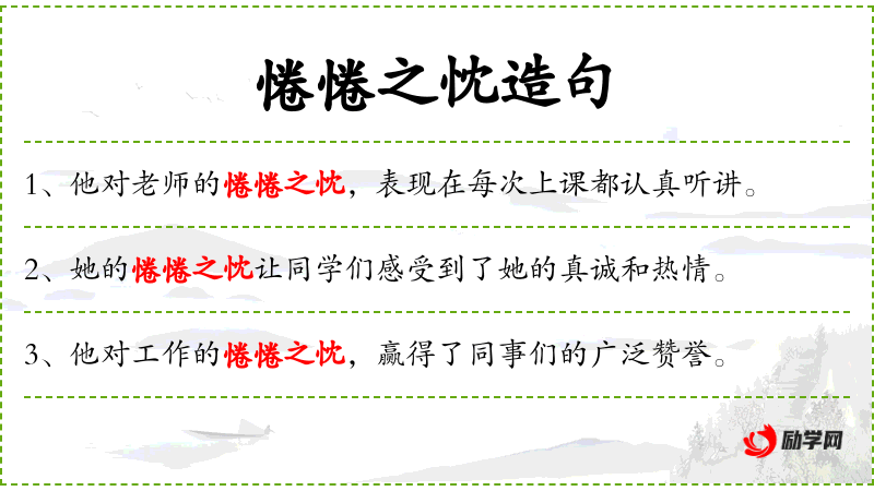- 惓惓之忱:形容词,意为深厚的关心和热情。