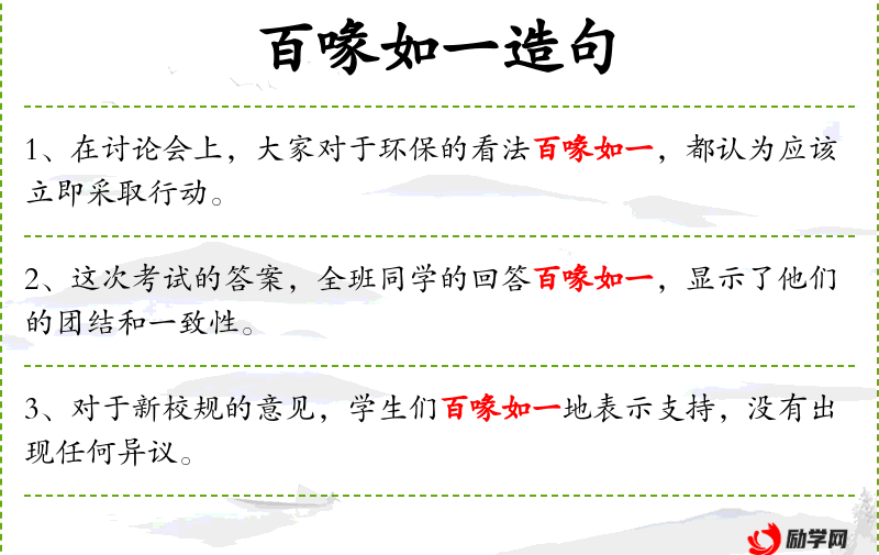 1. 【百喙如一】 - 犹言众口一辞。许多人都说同样的话,看法或意见一致。