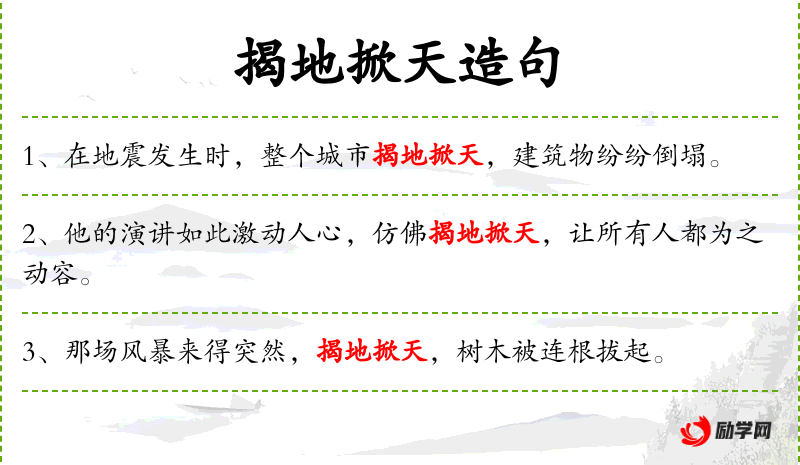 - 揭地掀天:这个成语形容决心极大,气势磅礴,源自**传统文化。