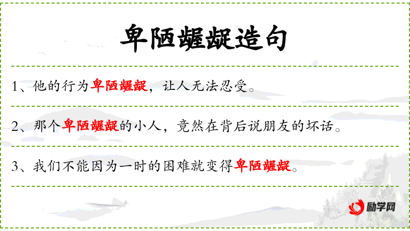 句子:“这种卑陋龌龊的手段,实在是不光彩。”