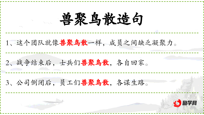句子:“这个团队就像兽聚鸟散一样,成员之间缺乏凝聚力。”