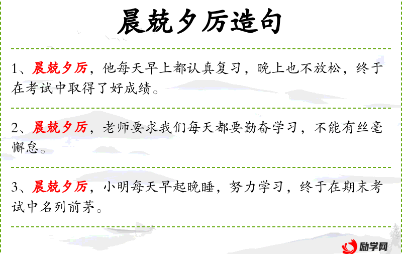 晨兢夕厉,小明每天早起晚睡,努力学习,终于在期末考试中名列前茅。
