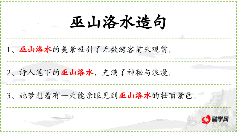 句子:“[巫山洛水的传说自古以来就广为流传。]”
