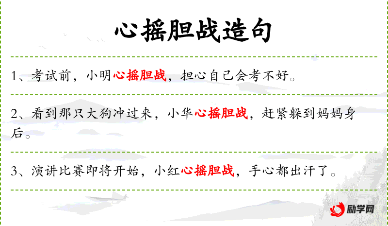 - 心摇胆战:成语,形容非常害怕或紧张。