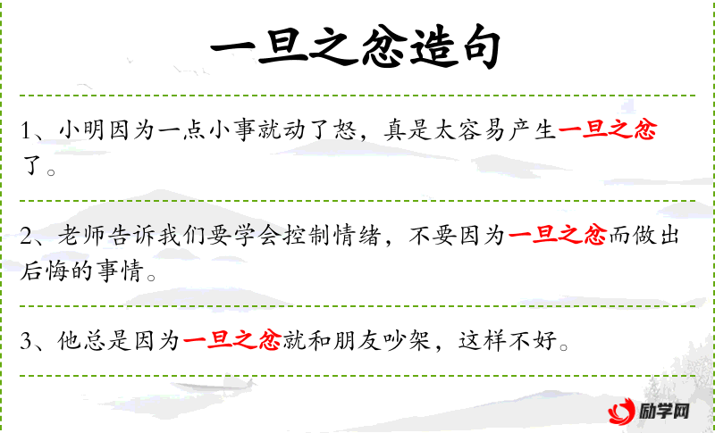1. 【一旦之忿】 - 忿:气忿。一时的气忿。