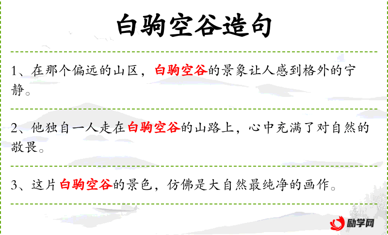 6. 【白驹空谷】 - 白驹:白色骏马,比喻贤能者。比喻贤能之人在野而不能出仕。后也比喻贤能者出仕而谷空。