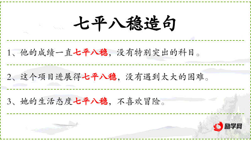 1. 【七平八稳】 - 十分稳定,物体处于平衡状态。