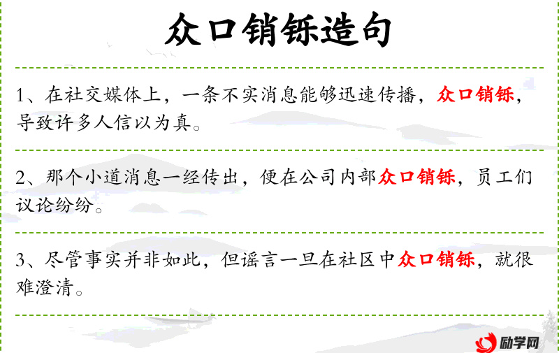 - 众口销铄:众口一词、舆论一致