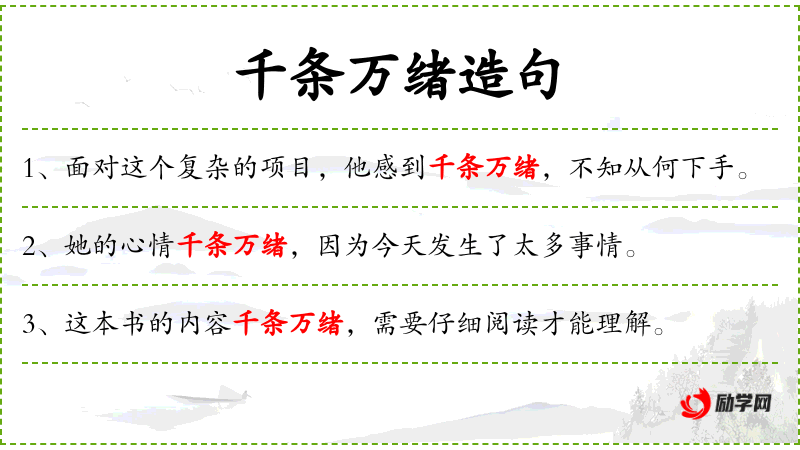 - 成语:“千头万绪”源自**古代文学,形容事情非常复杂,有许多头绪。