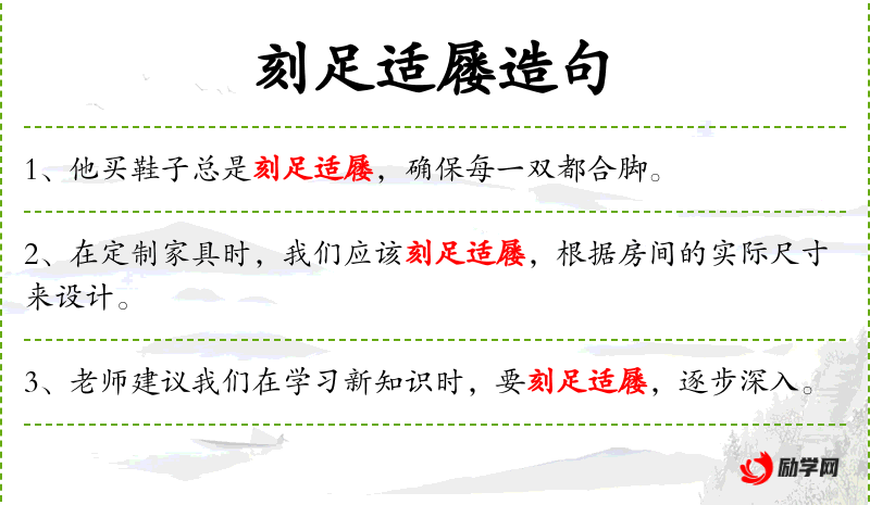 - 刻足适屦:这是一个成语,意思是比喻做事要适合实际情况,考虑到各方面的因素。