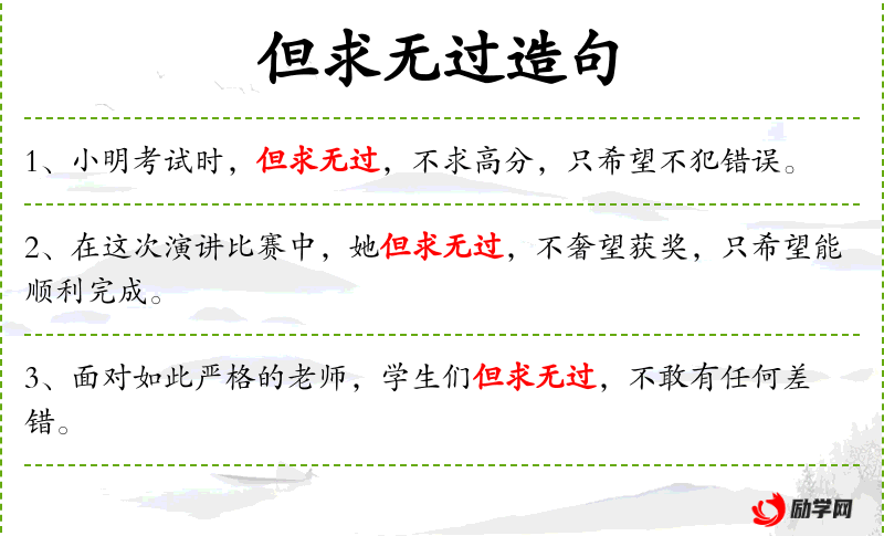 - 相关成语:但求无过是一个常用的成语,强调避免错误。