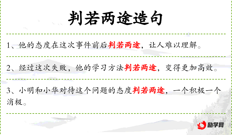 - 文化意义:成语“判若两途”体现了**文化中对事物发展阶段差异的重视。