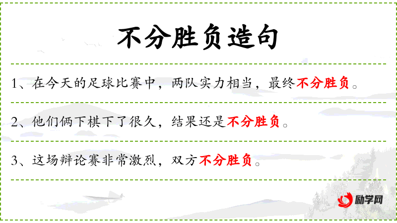 1. 【不分胜负】 - 分不出谁胜谁负。形容竞赛双方水平、技术相当。