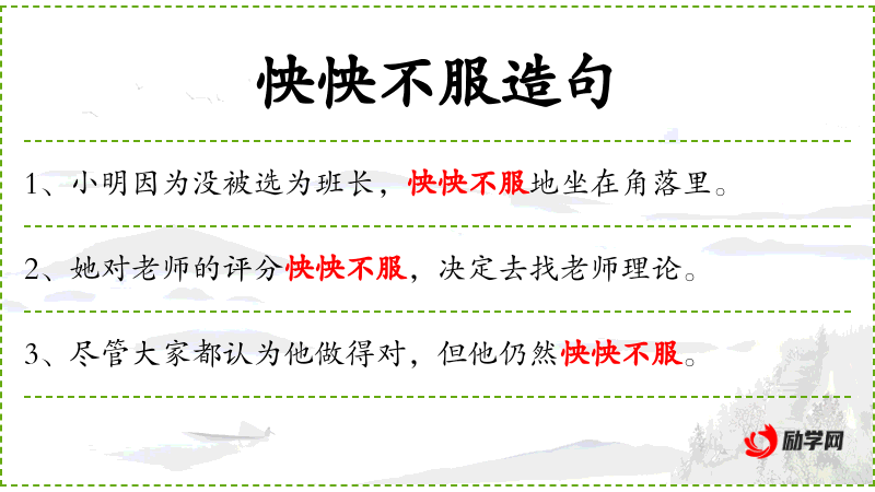 在实际交流中,这种句子可能用于表达不满或反驳。使用“怏怏不服”这个成语增加了语气的强度,表明说话者的不满情绪。这种表达方式可能在非正式的社交场合中更为常见。