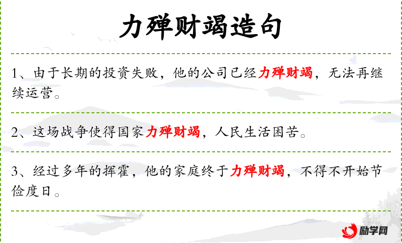 - 力殚财竭:筋疲力尽、财尽人亡