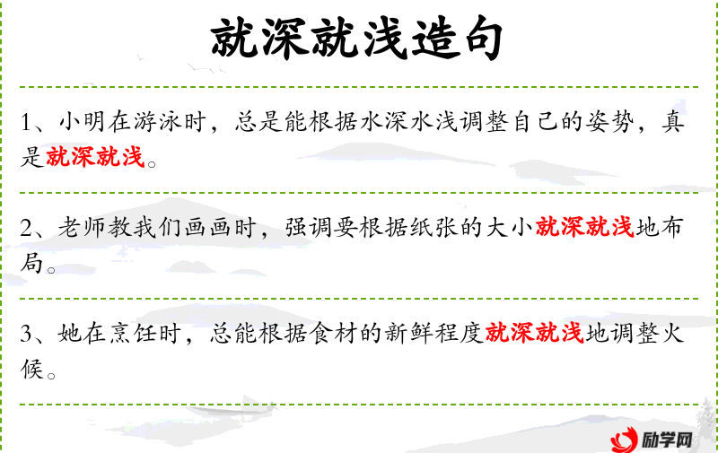 句子:“她在烹饪时,总能根据食材的新鲜程度就深就浅地调整火候。”