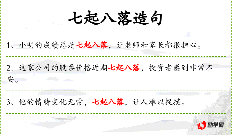 1. 【七起八落】 多次上下升降。形容麻烦不堪。