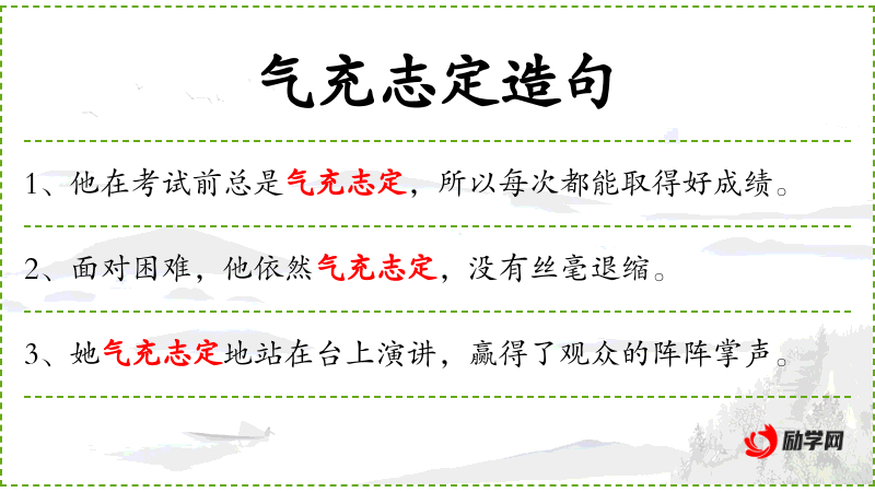 1. 【气充志定】 - 充:充实,充足。精力充沛,意志坚定。