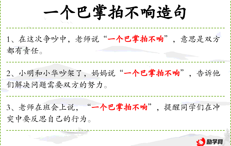 1. 【一个巴掌拍不响】 - 比喻事情不会是单方面引起的。