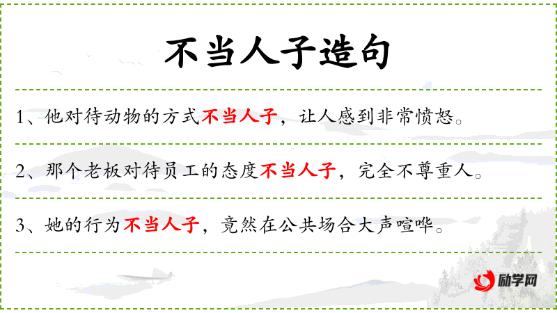 1. 【不当人子】 - 表示歉意或感谢的话,意思是罪过,不敢当。