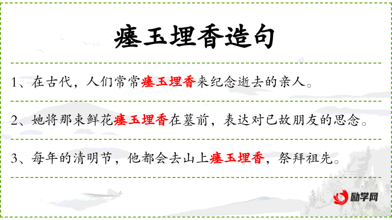 3. 【瘗玉埋香】 - 瘗:埋藏;玉、香:泛指美貌的女子。指美丽的女子死亡。