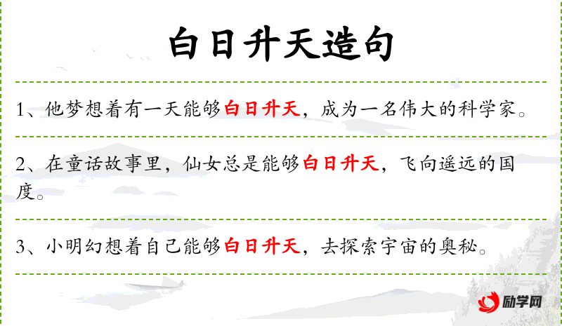 4. 【白日升天】 - 原是道教指白昼升天成为神仙。后比喻一下子富贵起来。