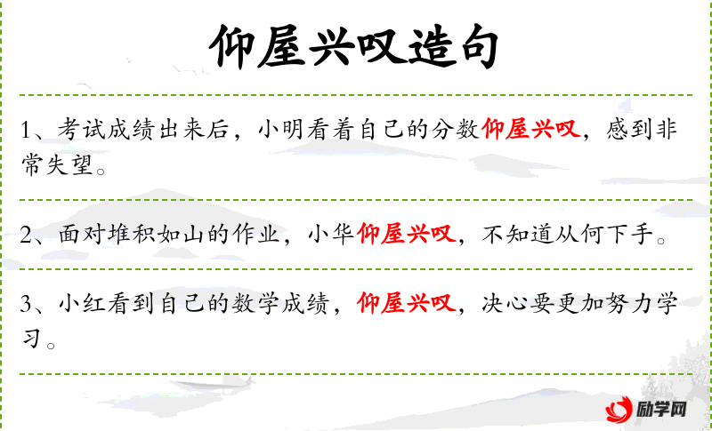 - 礼貌用语:仰屋兴叹是一种含蓄的表达方式,既表达了对他人作品的赞赏,也表达了自己的不足。