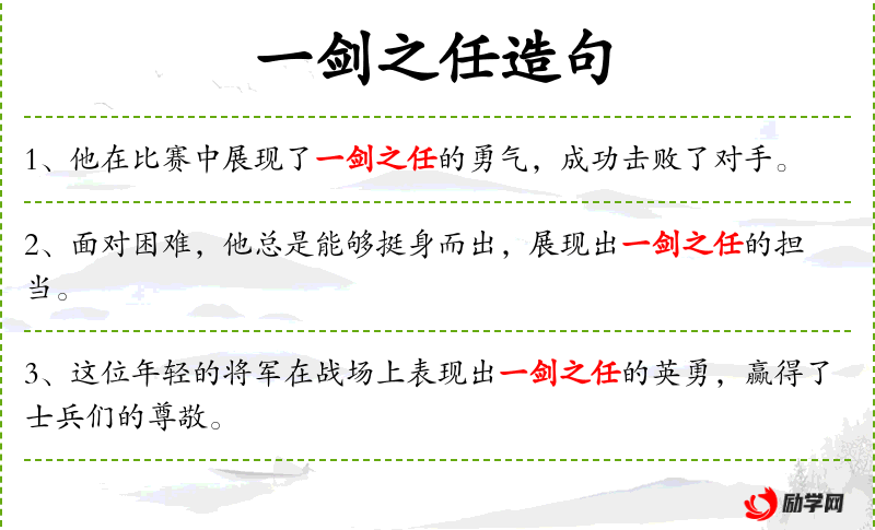 - 一剑之任:这个成语源自**古代武侠文化,指的是武士在关键时刻能够迅速做出决策并采取行动的能力。在这里,它被用来形容一个人在处理复杂问题时的果断和智慧。