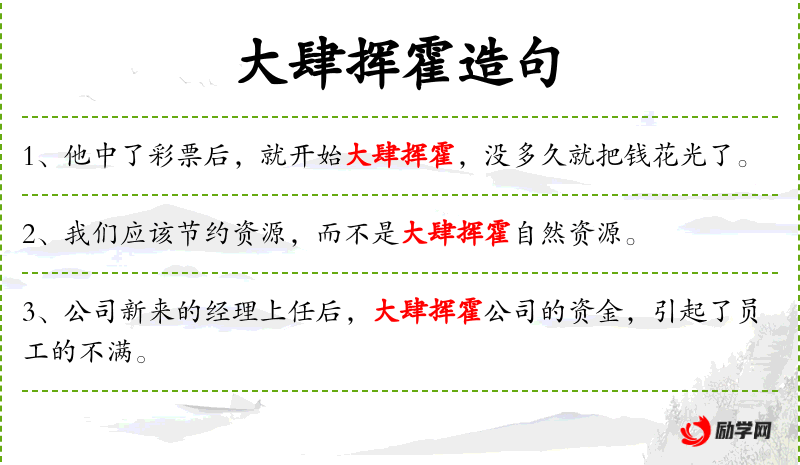 - 挥霍:动词,意为浪费,不加节制地使用。