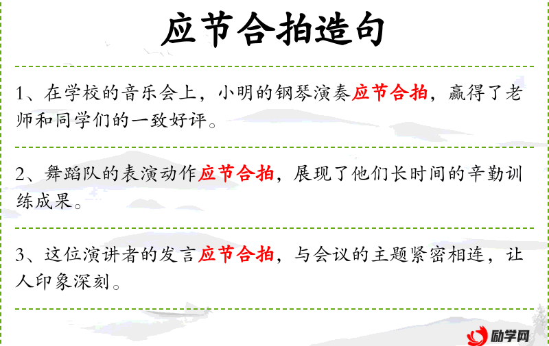 - 应节合拍:指韵律与音乐或节奏相协调。
