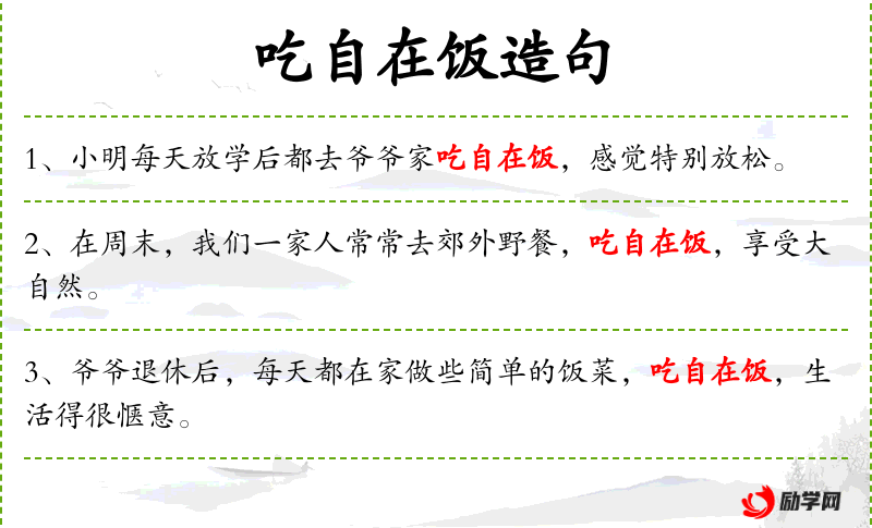 - 小明每天放学后都会去爷爷家享受自在饭,感到非常放松。