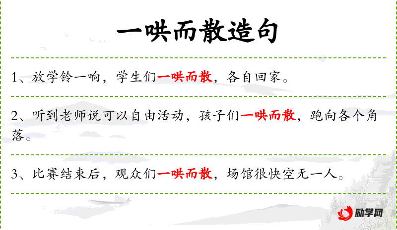 1. 【一哄而散】 - 哄:吵闹。形容聚在一起的人一下子吵吵嚷嚷地走散了。