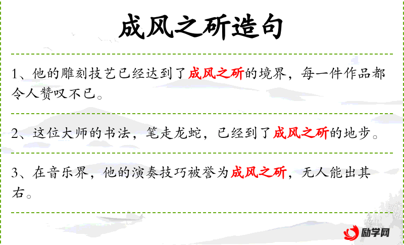 成语“炉火纯青”:源自古代炼丹术,形容技艺或学问达到了纯熟完美的境界。 “成风之斫”**:可能是一个较为生僻的表达,意指技艺高超到能够引领潮流。