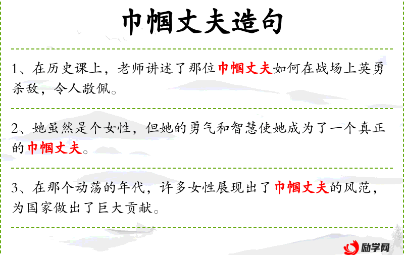 - 巾帼丈夫:这个成语源自**传统文化,用来形容女性坚强、勇敢,有男子气概。