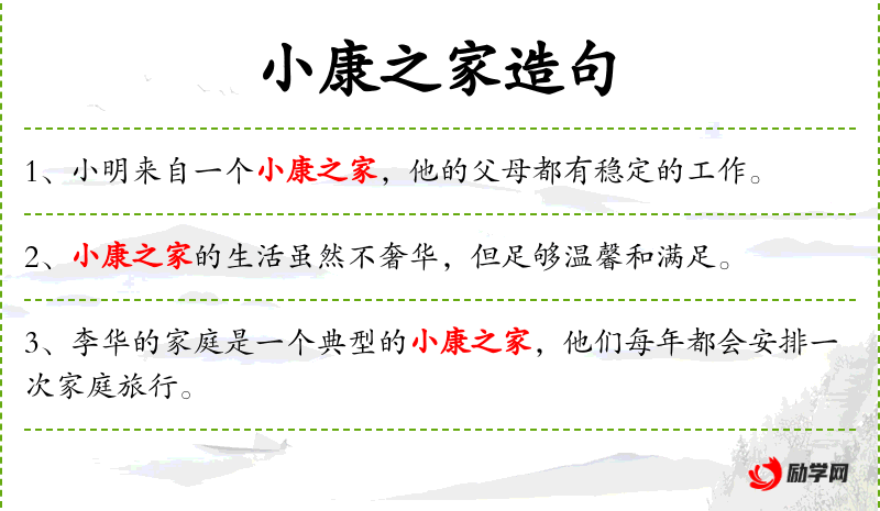 - 宾语:一个小康之家