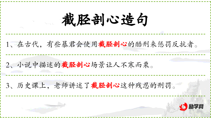 1. 【截胫剖心】 砍断足胫,剖开心胸。后以“截胫剖心”为暴君酷虐残民之典。