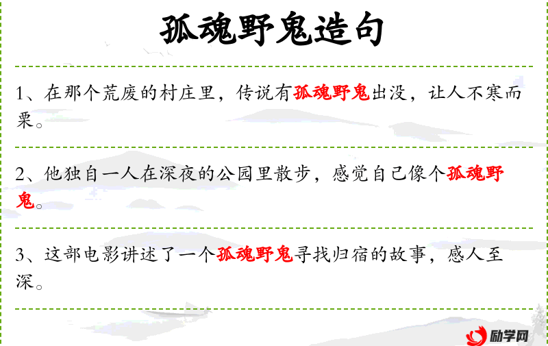 句子:“在那个古老的城堡里,流传着许多关于孤魂野鬼的神秘故事。”