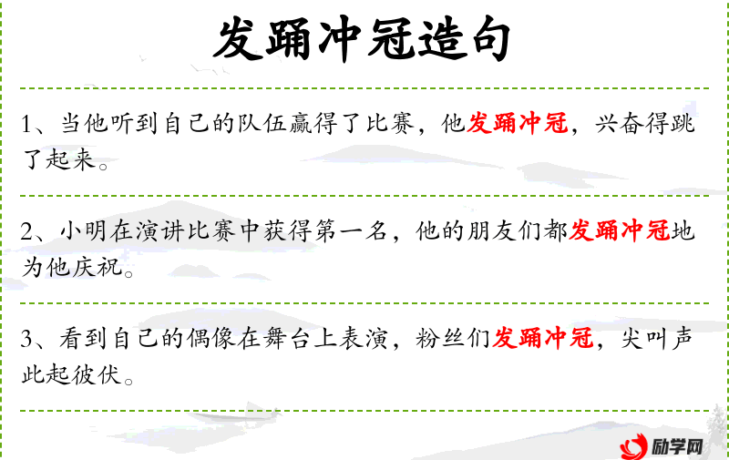 - 发踊冲冠地:副词短语,形容非常激动和兴奋的状态。